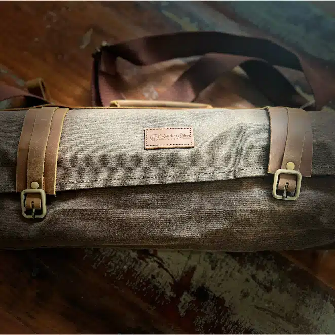 All blades etched with Mike Robinson’s Farming the Wild logo. Knives are secured in a wax canvas and leather knife roll bag. Durable, easy to carry and great to use, wherever you go!